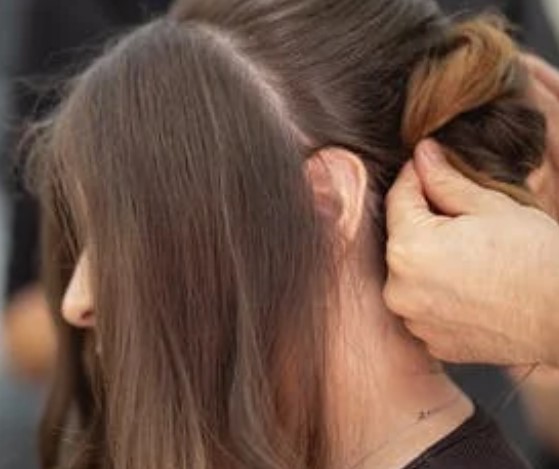 6、用手将两侧头发进行整理,以免过多的碎发掉落下来。