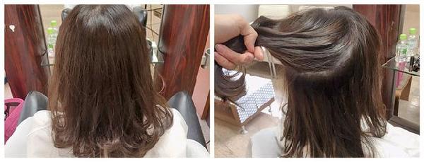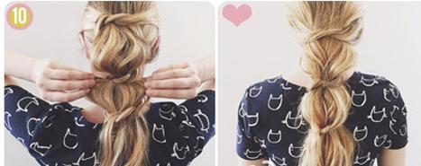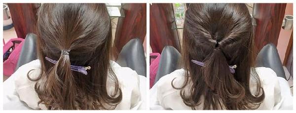 STEP3:用橡皮筋固定。 STEP4:翻转发丝。
