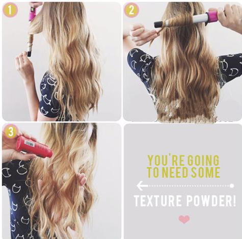 STEP1:用32mm的卷发棒为发梢施加卷度。STEP2:取出头顶的发丝,如图所示。