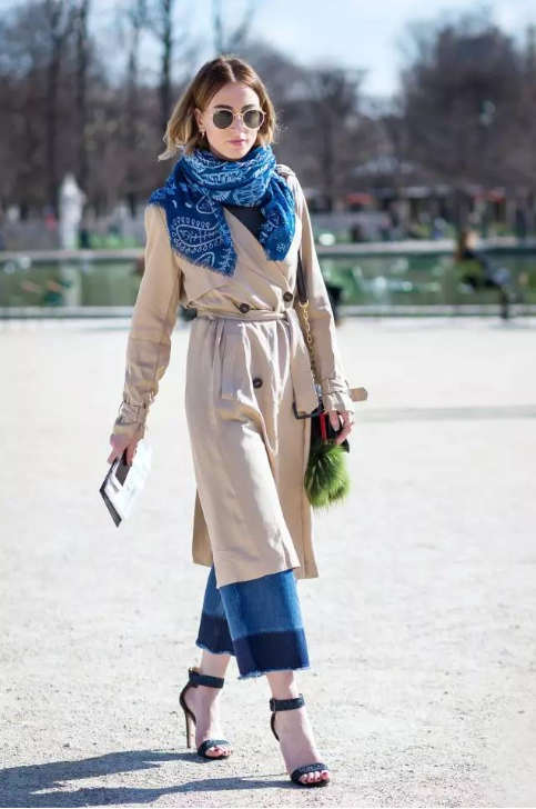 如果你想要重温一下学生风格,不妨尝试一下风衣搭配牛仔裤,这是一种调皮、年轻的风格,特别适合学生,也适合性格开放的人。有时候我们见多了司空见惯的风格,突然之间换一种搭配,反而能够让人耳目一新,我们不必去追求大众的审美,适合自己的才是最好的。