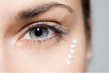 用无名指蘸取绿豆粒大小的眼霜,先在眼睑下方点一下,另一只手轻轻地将眼的下眼皮往下拉一点,其主要作用是把眼部的细纹拉平,让眼霜渗入这些细纹中。顺内眼角、上眼皮、眼尾、下眼皮做环形轻轻按摩,让肌肤完全吸收即可。一般按摩4~5圈左右。最后再用两手的无名指,轻轻地点拍相对应的眼睛,特别是眼袋部分,这样有助于血液循环,减少黑眼圈。