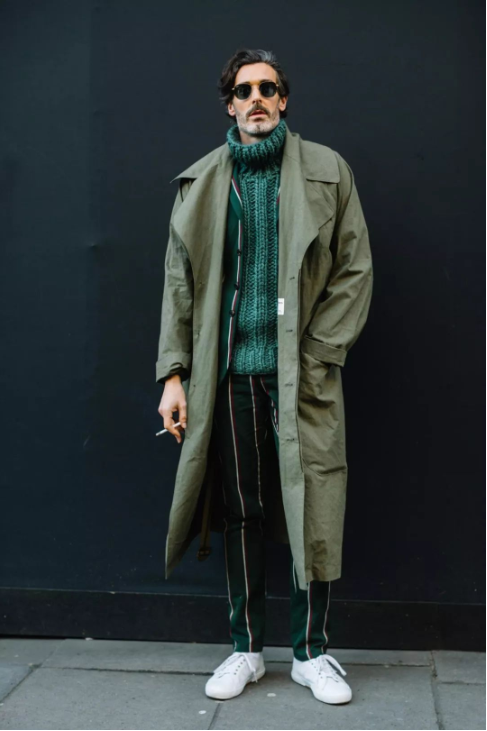 运动鞋和西裤搭配也是非常潮的搭配方式,这种风格既有西裤的正式感,又有运动鞋的休闲感,很适合日常出门穿,是一种正式却不会很死板的穿搭方式。