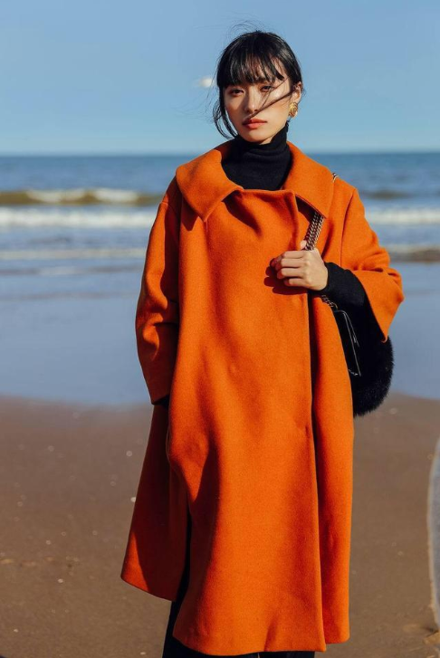 橙色最能考验一个人的衣品,因为穿橙色衣服需要好好搭配下装、鞋子,除了白色之外,跟橙色最为理想的颜色组合就是黑色和灰色了,其他的颜色搭配上去会显得有点突兀。秋天的话,你可以穿一件黑色毛衣,外面穿橙色长款外套,下装穿一条牛仔裤,再搭配一双黑色的鞋子,这样穿会非常有气质。