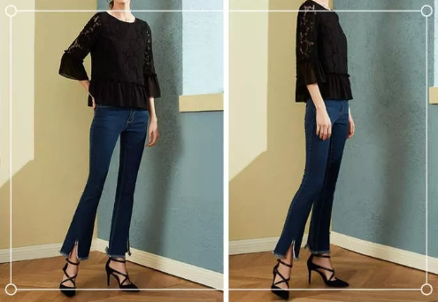 黑色百搭耐看,既神秘又能给人一种放荡不羁的感觉,经典的黑色上衣,下装裤子选用的是蓝色调元素,能透露出一种简约又高级的视野感受,当沉闷单调的黑色遇上蓝色之后,色彩之间的巨大反差,却能在不见经意间将彼此的格调更添几分摩登时尚的效果。