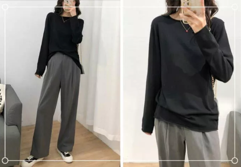 灰色属于一种带有高级感的色系,而且在服饰上也最常见,不管是上衣还是裤子,它的出场频率都比较高,最主要的是灰色还是介于黑白之间的色调,将它跟黑色的上衣组合起来也是一组经典的搭配色系,能释放出更加高级的质感,让穿搭造型显得更加有档次。