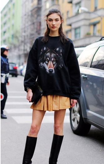 过膝半身裙搭配宽松卫衣绝配,再搭配一双帆布鞋或者运动鞋,让整个人充满活力!穿出元气满满feel,卫衣承载着多少人的青春啊!