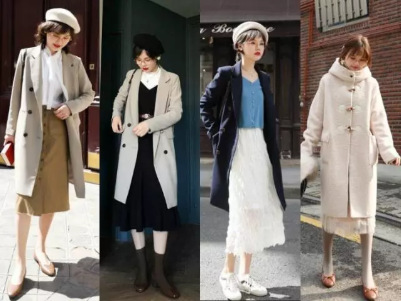 真的太好看啦!一件中长款外套搭配着及膝半身裙,再是一双打底袜子,鞋子可以是小白鞋,整个人看起来层次分明,但甜美得很,保暖又时髦,走到哪里都是气质满分。