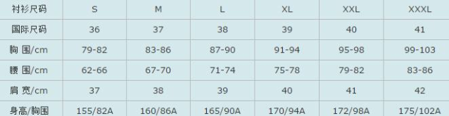 女衬衫标准尺码对照表