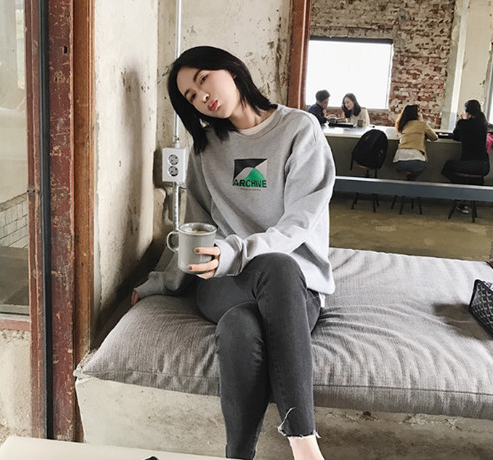 小脚裤的材质的不同搭配不同的灰色卫衣会给人呈现出不一样的感觉风格。比如下面这款无帽的套头卫衣搭配一条灰黑色的牛仔小脚裤,不仅可以将完美的身材展现出来还能凸显个人的气质和品位,是一套很适合轻熟女穿搭的搭配。
