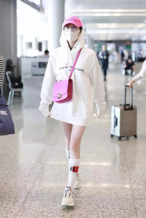 粉色包包搭配卫衣真是为秋冬增添了青春的气息,是很好的减龄搭配。