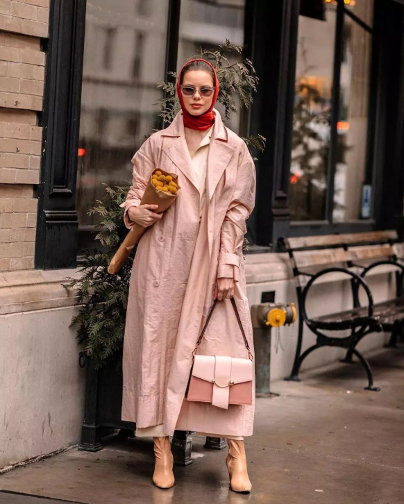 羽绒服是冬季必备的单品,厚重的羽绒服搭配粉色包包在视觉上完美的减少了羽绒服带来的厚重感,更多的添加了些许轻快、俏皮感。
