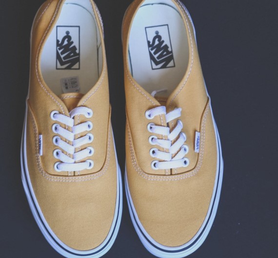 8、多余的部分在鞋子内侧和黄鞋带一起打结处理。