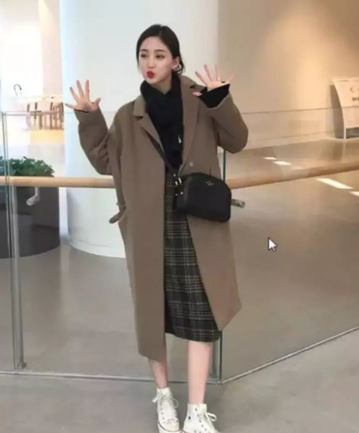 155小个子大衣长度最好是105cm,“九分”的长度是我们用的最多的概念。基本原则是不要盖过脚面,适当露出纤瘦的脚踝,给人视觉上以骨感,小鸟依人的效果。因此将这一原则运用在155的身高上,适当调整比例,95-105的长度是较佳的选择范围。