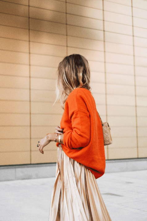 秋冬两季时,我们可以穿一件橙色卫衣搭配超短裙,或者长款外套,绝对让你光芒万丈。橙色象征着温暖、光明、精力充沛,年轻人穿橘色的衣服会显得很活泼,充满朝气和元气,不管男女都能驾驭,衬肤显白又时尚。