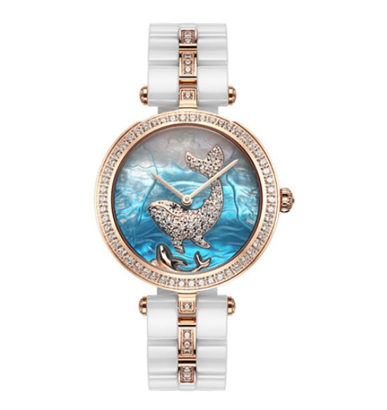 这款手表外观设计精致,款式好看,做工细致,质量应该很好,搭配衣服感觉很好。 这款手表非常优雅,给人一种清新脱俗的感觉。行走时相对准确,没有大的误差。总的来说,这块手表相当令人满意。