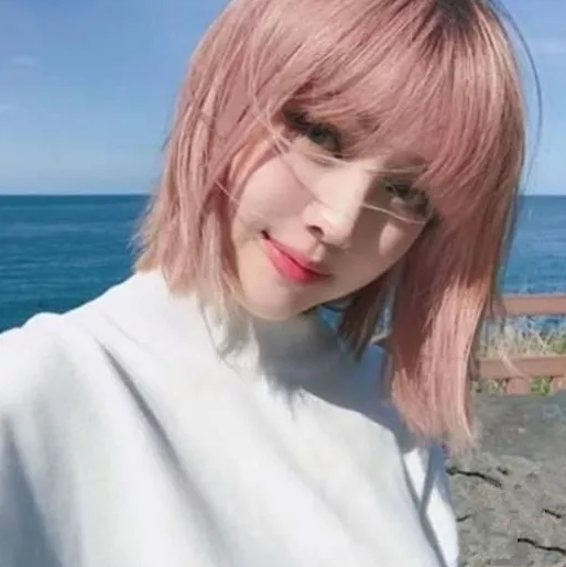 7. 浅粉色 发型类型:齐刘海波波头 pony大神的齐刘海波波头,发尾剪的很薄,对圆脸有很好的弱化作用呢,这种浅粉色的发色更是为颜值加分,皮肤白的人染了绝对是小仙女。
