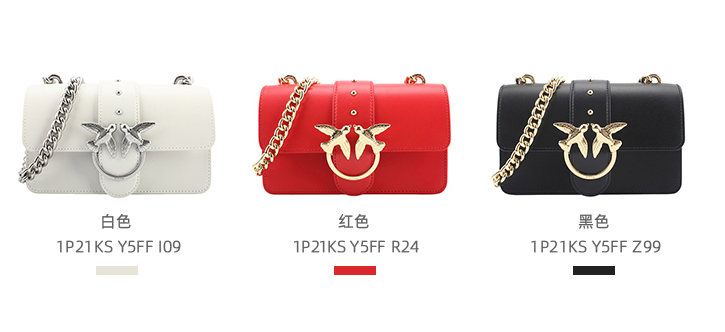 正品pinko包包正中的金属扣装饰,燕子扣,大部分样式PINKO包包的燕子扣为金银色,仿品就是把金色做成了亮金色,把暗银色做成了亮银色,如果在日光灯下无法正确判断,可在自然光线下对比即可。正品燕子口抛光后的哑光,光亮且有质感,假的燕子扣则是朦胧的哑光,光泽度差很多。