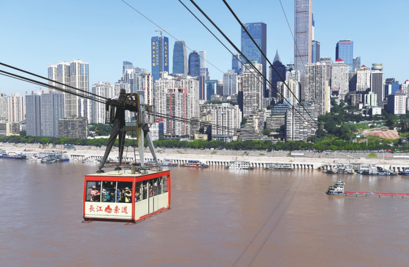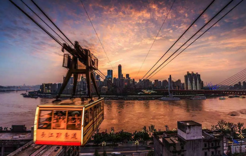 重庆长江索道始建于1986年3月20日,1987年10月24日竣工投入运行,是我国自行设计制造的万里长江上第一条大型跨江客运索道,有着万里长江第一条“空中走廊”、城市“空中客车”之美誉。索道北起渝中区新华路(长安寺),南至南岸区上新街(龙门浩),连接商务繁华的渝中区和山水都市的南岸区。