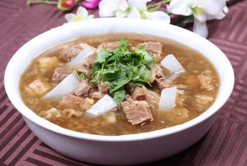 特点:鸭肠白绿相间,汤汁油红润亮,质地清淡脆嫩,略有酸辣美味。