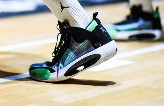 AJ34的外底 Zoom Air 与 JUMPMAN LOGO 为塑料材质,日常穿着需多加注意。AJ34中底全新镂空Pbex支撑片,韧性是普通TPU的2倍+, 镂空处还可以看见巨大的ZOOM AIR,是非常骚气的一个细节。