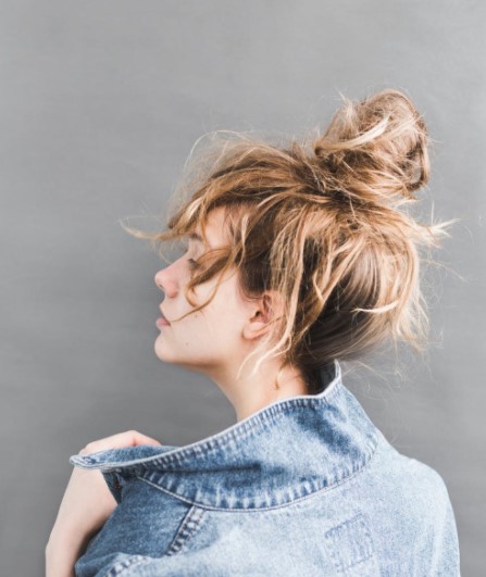 半丸子头也就是丸子头的衍生版,而且是最适合短发的女生了,在淑女和俏皮之间徘徊,有着短发的利落大方也有丸子头的减龄,再讲头发进行染烫的话,相信走在街上回头率蹭蹭地往上涨。即便是额头有刘海的话也没有关系,简单地绑起来,然后弄个空气中分刘海,就会让整体的效果看起来很佳。