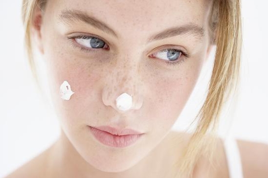 乳液:采用五点法将乳液点在额部、双颊、鼻部、下巴处(或将乳液在双手揉开)。