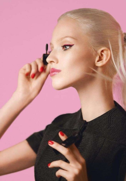2、以水平方式拿起睫毛刷,从根部开始刷,在往上挑着刷时候,要呈Z字形左右移动。记住左右异动的是睫毛膏,而不是脸;