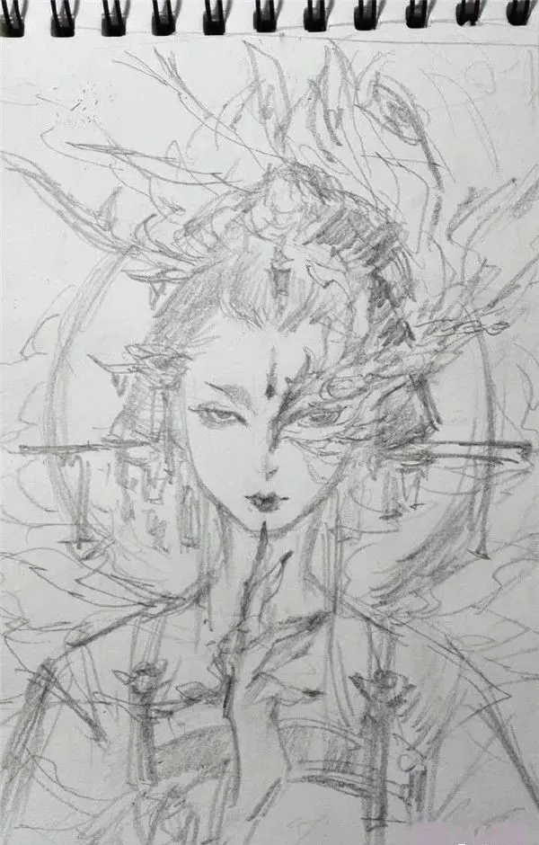 4. 之后就是该刻画人物的发饰了,用铅笔把发饰画好,不过这个发饰画起来有一定的难度,普通人不建议轻易尝试哈。