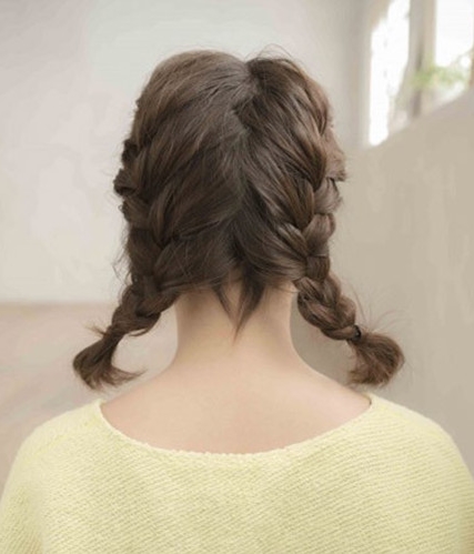 一定不能少了一款双马尾发型,扎起来非常方便,短发的女生扎双马尾,活泼俏皮,主要是清爽凉快,有刘海的显得超可爱,无刘海可以把头从中间分开,编两个鱼骨辫,这样即使一个酷酷的造型。