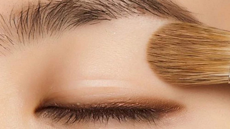 3. 单眼皮的女生要打造双眼皮大眼睛,烟熏妆会显得比较适合。所以,在贴好双眼皮胶之后,要开始画眼影。先用白色的眼影将上眼皮大面积涂抹均匀,让双眼皮胶显得更加的自然。