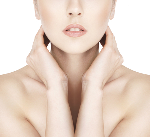 2. 涂抹颈霜前先将双手搓热,然后将颈霜均匀涂抹在脖子上,再进行按摩,由下至上,尤其注意淋巴处。