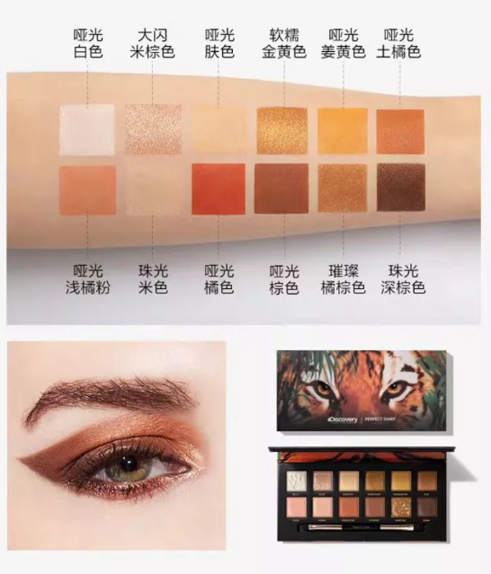 完美日记斑虎盘配色以黄色、橙色为主,特别适合夏天,但是因为配色比较统一,所以它所能完成的眼妆风格也都比较活泼、日常。外包装也很大气。老虎的眼睛是立体悬浮状的 摸起来很有感觉,看起来也很有神韵。粉质也很细腻,飞粉情况良。最美的就属它的珠光色,blingbling的闪起来超级美丽!