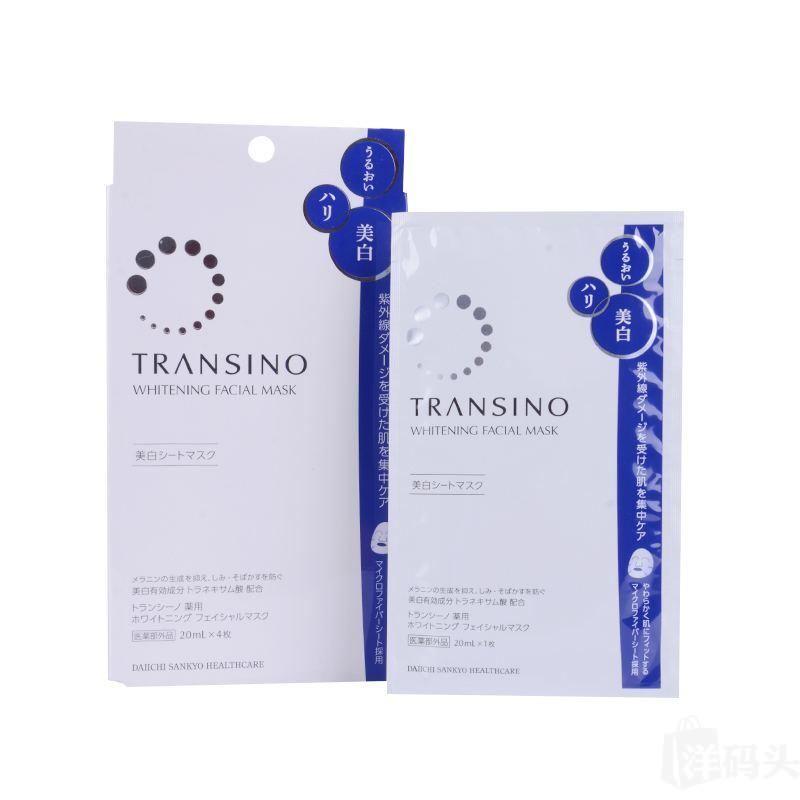 Transino是第一三共药厂的另一个皇牌系列,是主攻美白祛斑的产品。Transino美白精华面膜的美容液有祛斑美白的效果,能彻底断绝因为紫外线照射而形成的黑色素,有效抑制黑色素的生成,防止雀斑、黄褐斑的出现。另一个特点是保湿力强,滋养肌肤的同时增强皮肤的弹性。其温和的低刺激配方,敏感肌也适用。