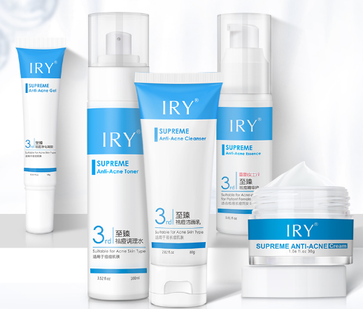 IRY新肌赋活系列、IRY二代痘肌护理系列、IRY三代至臻痘肌护理系列。