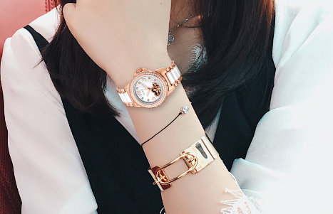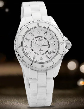 这款以高科技精密陶瓷为主要材料的莱茵表,打破颜色非黑即白,款式陈旧老成的陶瓷腕表传统,在一年一度钟表展上刚一亮相,就被全球表迷誉为美丽艺术的化身,由完美的圆弧轮廓构成的轻巧精密陶瓷表,玉圆润透,颜色鲜活靓丽,与人的肌肤融为一体,气质顿生,展现出非凡的天作之合。
