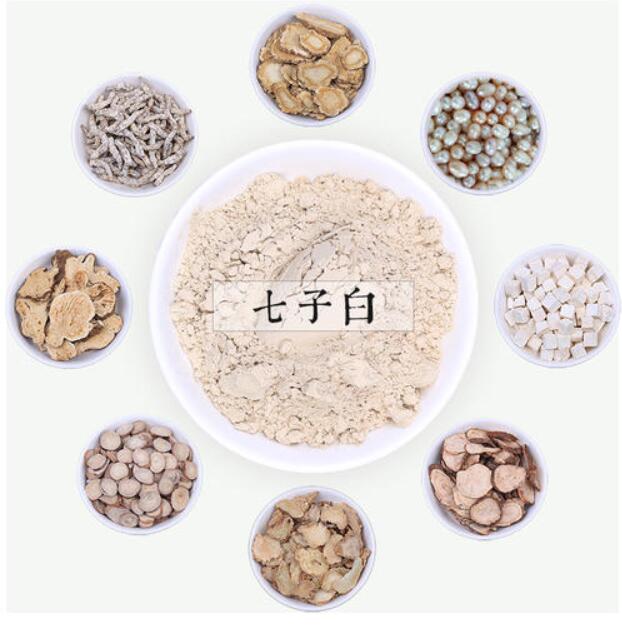 材料:薏仁、杏仁、白术、白芷、白芨、白蔹、白茯苓、白芍、珍珠粉等9种药材。