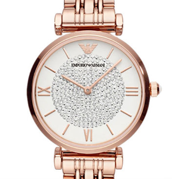 这个品牌有一款皮革表带玫瑰金不锈钢计时腕表,在设计方面,小编觉得这个配色蛮适合女性的,温婉不失时尚,它的表面用了玫瑰金不锈钢,腕带是真皮的皮革材料,整个外壳是玫瑰金色,上面有一个阿玛尼的品牌标志,无时无刻彰显着时尚的气质。