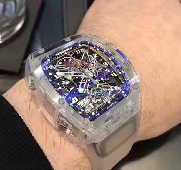 理查德米勒RM56-02的三层表壳,由处理蓝宝石水晶的著名专家Stettler先生在瑞士Lyss经过铣磨工艺加工而成,具有极致的透视美感与抗磨损性能。制作时间为3个月,无论是对技术,还是材料都是极其大的考验。