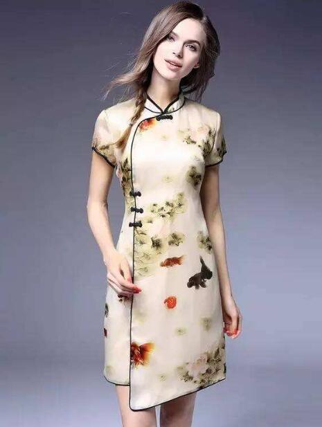 如果是身材比较娇小的女性,穿短款或是到膝盖的旗袍会适合一些,既能拉长整体的身形又能方便我们随意活动。