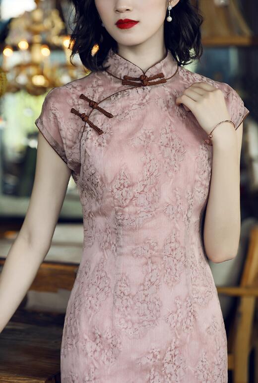 旗袍上的扣子叫盘扣,是古老中国结的一种,经常用来制作旗袍上的纽扣。旗袍的选择,一定要根据自身的身材、肤色、脸型进行选择,才能找到自己合适的。