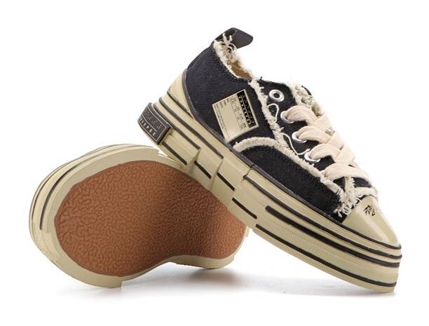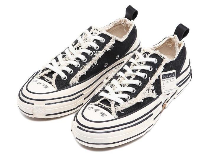 xVESSEL在INNERSECT 潮流展首次亮相,所出品的首双鞋款Peace by Piece 低筒,可以看到整双鞋以帆布鞋为基底,设计手法为将好几双帆布鞋「解构再重组」,呈现鞋面错位及多层的中大底,以及表面帆布的抽须及破坏,加上鞋头的手绘字体,非常能够反映出吴建豪本人的艺术特质及对潮流的见解。