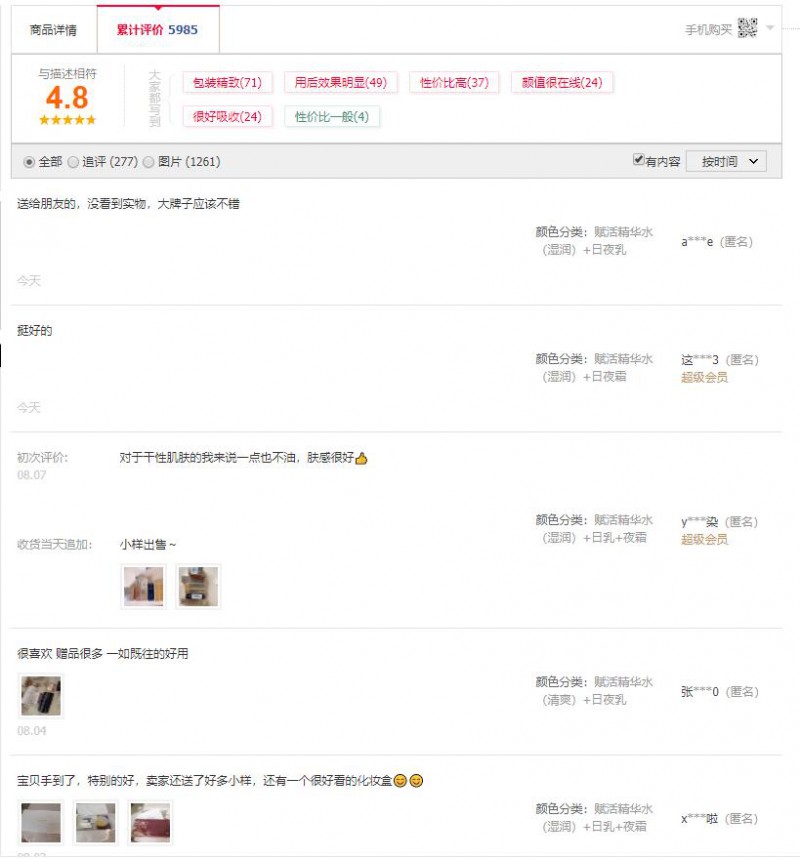 推荐理由:抗皱紧致的作用,对抗初老十分奏效,淡斑印淡斑,令肌肤通透有弹性,适合干性肌肤使用,打造轻薄裸妆效果,很适合敏感性肌肤使用哦,它的滋润效果极佳。