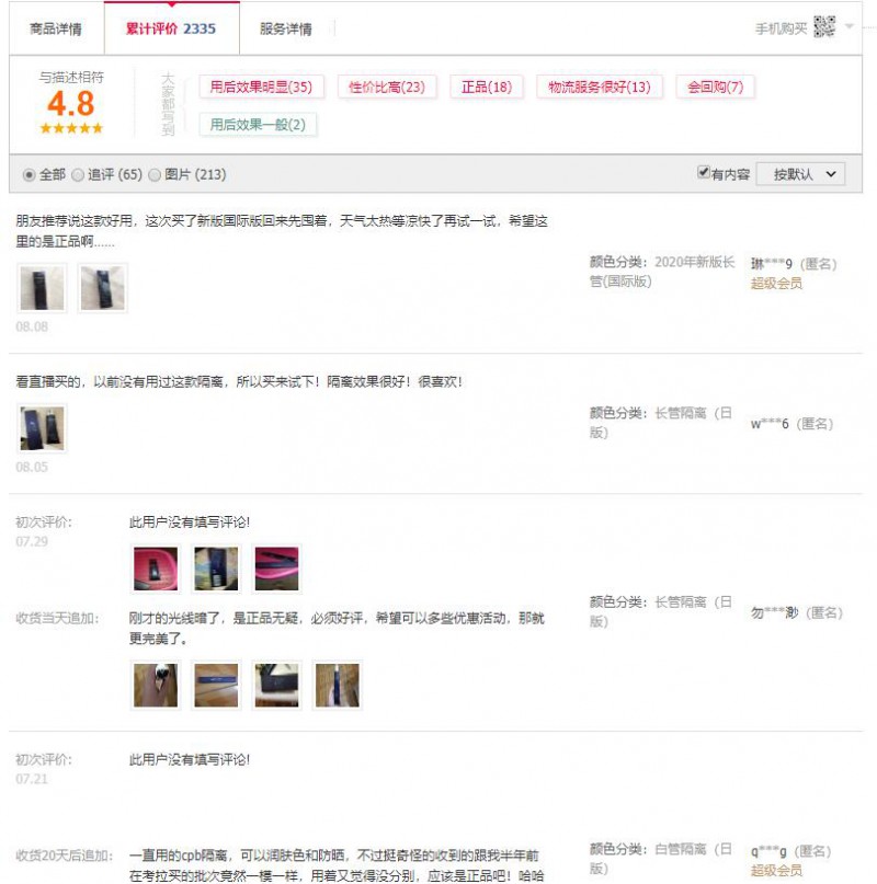 在该品牌的几个电商平台旗舰店的2.5万评论中,反馈效果明显的用户占了绝大多数,只有百分之一左右的用户觉得效果一般,由此来看,这款产品还算是比较不错的,具体还是要根个人的肤质,经济条件来选择最合适自己的产品。