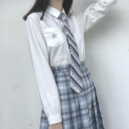 2 JK制服领子上是有襟线的,襟线有很多种颜色还有不同宽窄,还有变形襟。但是无论什么样子的襟线,都要切忌反光的襟线。