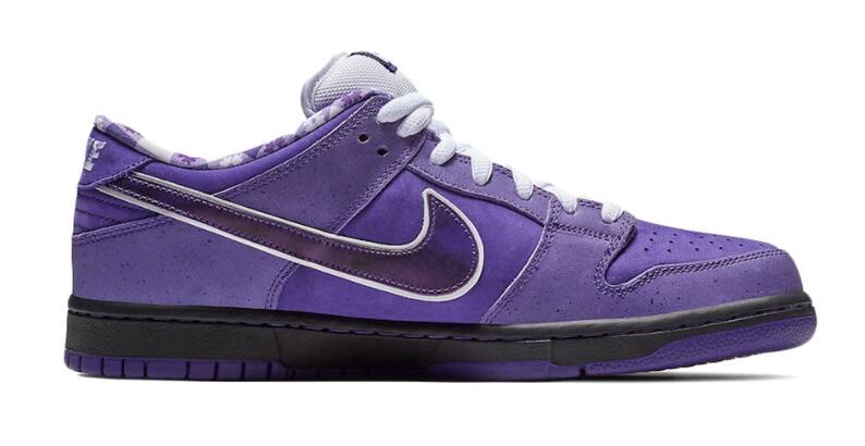 2018 年为了纪念首个“龙虾”系列,推出了Concepts x Nike SB Dunk 紫绿龙虾两个配色,受到了大众的疯狂追捧,SB系列也迎来了它的黄金时代。