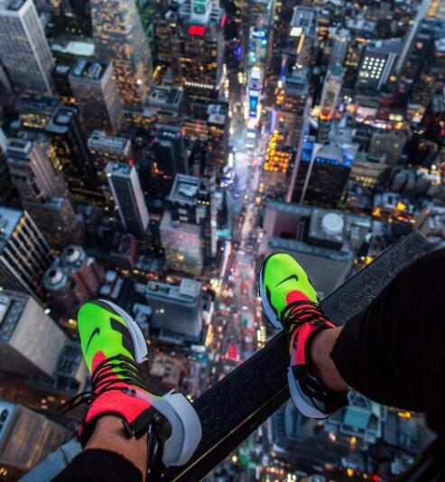 3.与腿同框、制造纵深、环境酷,总浏览球鞋社交账号的,这种拍摄手法上镜频率是最高的,人物与鞋融合,制造逼格。