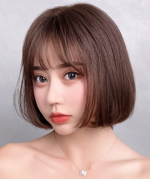 一款很有气质的中老年短直发发型,三七分的设计将头发完美的偏梳于一侧,两侧微微内扣的发尾很好的修饰脸型线条,搭配温暖的巧克力发色,彰显着一股年轻的时尚气质魅力,减龄效果杠杠的!