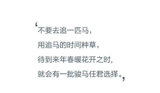 用追马的时间去种草这句话的意思就是:当追求一样东西,却很难追到的时候,就可以考虑提高自身的能力,更好的去获得自己想要的。
