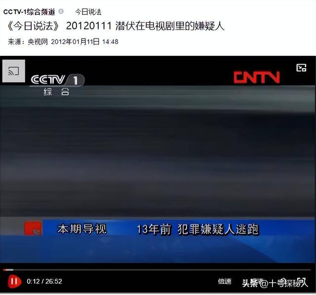 央视网:视频《今日说法》 20120111 潜伏在电视剧里的嫌疑人(央视网版/2012年)视频内容2‘14‘’’处)