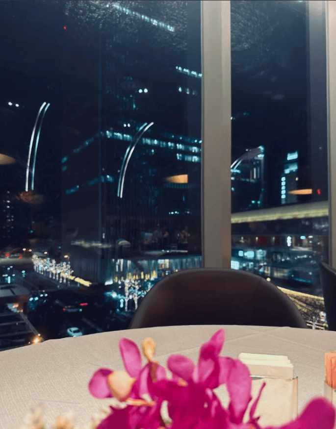男友视角拍的照片就是要更美一些了,一头秀发看起来像个少女一般,从餐厅的落地窗正好可以看到整个城市的风景,两人点了6道菜也刚刚好了,都是俞灏明爱吃的菜系比较偏广系,除此之外,两人还点了圣诞节限定咖啡,怪不得最近王晓晨都胖了一些,原来是幸福肥了。